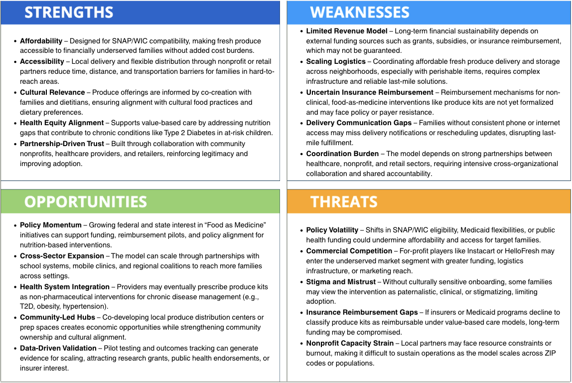 SWOT Analysis for Concept: The Food as Medicine Family Initiative