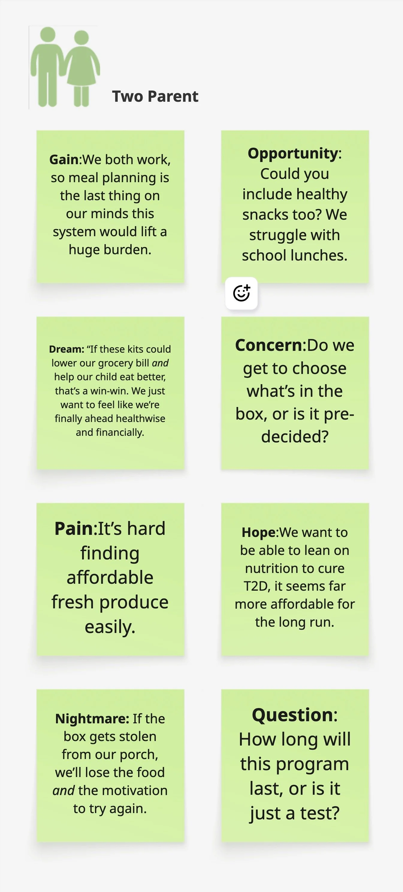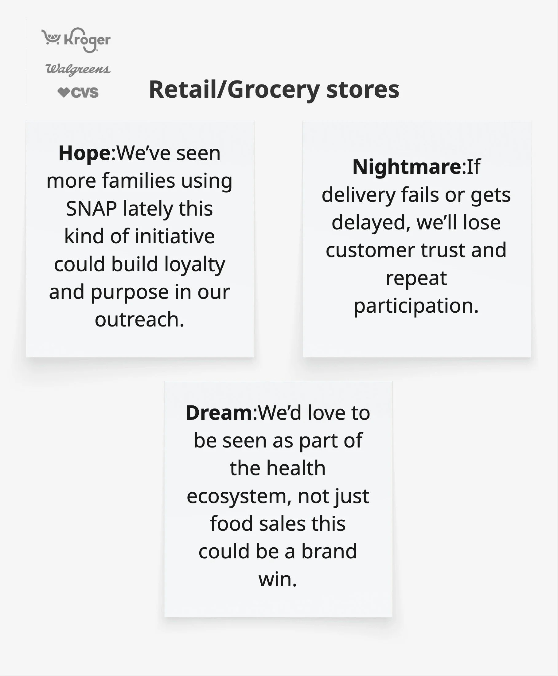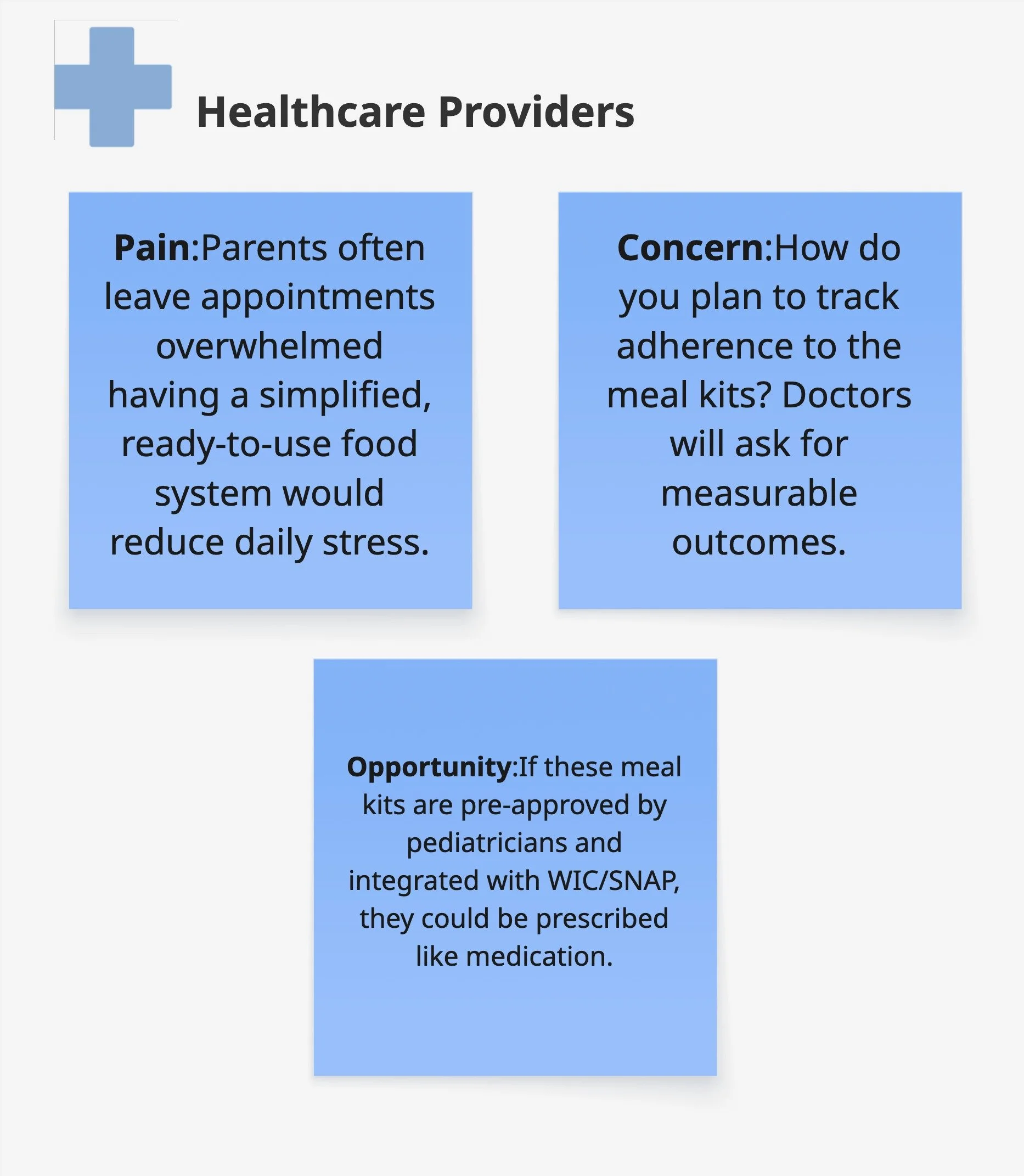 Validated concepts with 8 cross-sector stakeholders (public & private healthcare, nonprofit leadership, and food retail partners) through collaborative Miro workshops